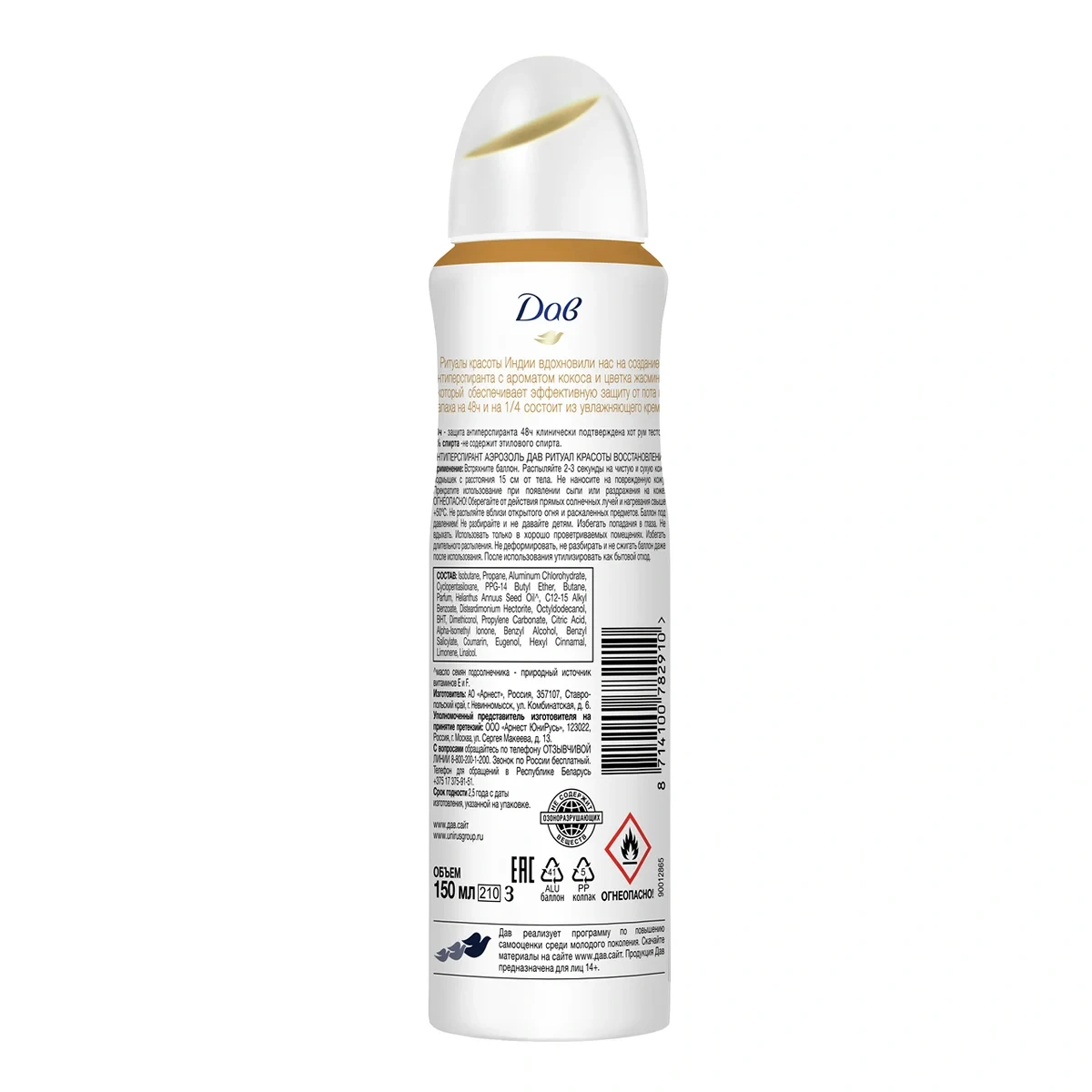 Антиперспирант-спрей Дав Ритуал восстановления красоты, 150мл