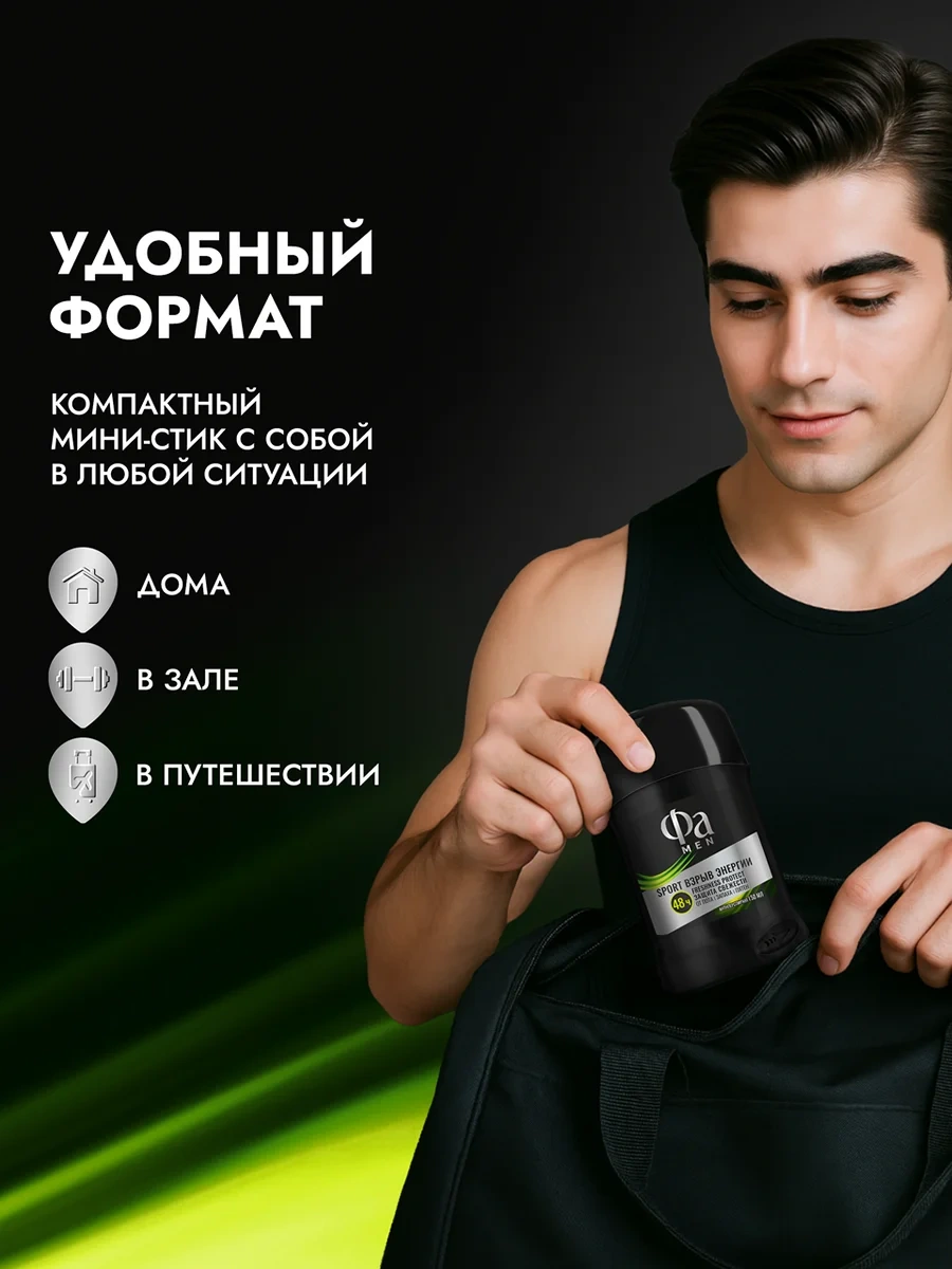 Антиперспирант-стик Фа Men Sport Взрыв энергии обеспечивает эффективную защиту от пота, неприятного запаха и пятен до 48 часов благодаря технологии Freshness Protect. Эффективен во время занятий спортом.