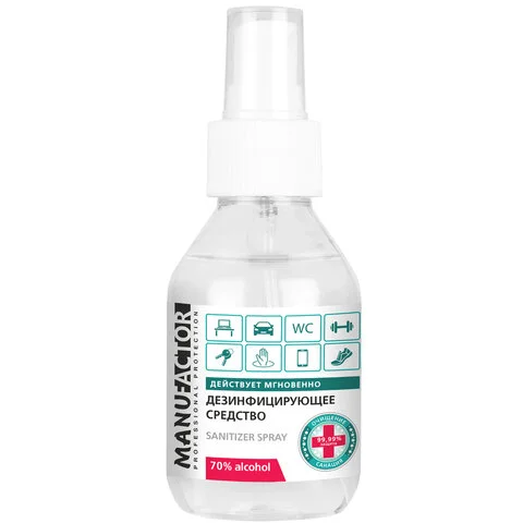 Антисептик для рук и поверхностей спиртосодержащий (70%) с распылителем 100 мл MANUFACTOR, дезинфици