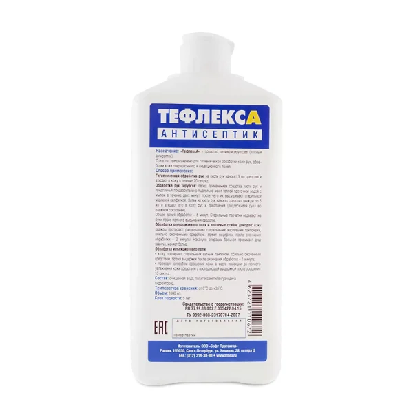 Кожный антисептик ТефлексА предназначен для обработки рук хирургов, операционных медицинских сестер, акушерок и других лиц, участвующих в проведении операций, приеме родов; локтевых сгибов доноров, а также для обработки кожи операционного и инъекционного полей пациентов лечебно-профилактических учреждений (ЛПУ). Он подходит для гигиенической обработки рук медицинского персонала ЛПУ, медицинских работников детских дошкольных и школьных учреждений, учреждений соцобеспечения (дома престарелых, интернаты), работников химико-фармацевтических, биотехнологических и парфюмерно-косметических предприятий, санаторно-курортных учреждений, предприятий общественного питания, объектов коммунальных служб, включая парикмахерские и косметические салоны. Рекомендуется применять во время эпидемий ОРВИ и гриппа.