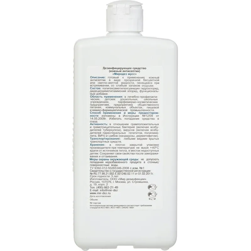 Мир Дезинфекции Миродез мусс - дезинфицирующее средство (кожный антисептик)