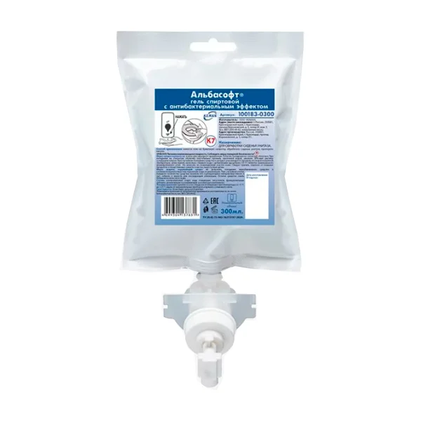 «АЛЬБАСОФТ» гель спиртовой с антибактериальным эффектом ТМ КЕМАN, картридж объем 300 мл для диспенсера К7 TM KEMAN. Картридж 300 мл на 300 порций. Изготавливается без отдушки и красителя.