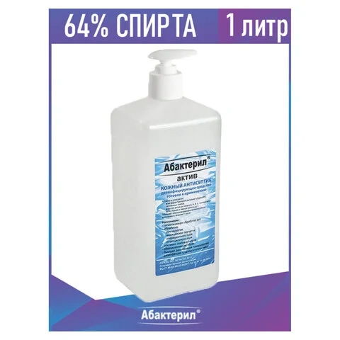 Антисептик для рук с дозатором Абактерил Актив 1л, кожный, с дозатором