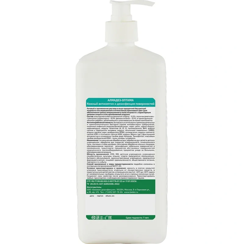 Антисептик для рук и поверхностей бесспиртовой с дозатором 1л АЛМАДЕЗ-ОПТИМА, дезинфицирующий, жидко