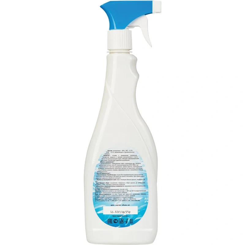 Состав: изопропиловый спирт 75%, вода, алкилдиметилбензиламмоний хлорид 0,25% дидецилдиметиламмоний ...