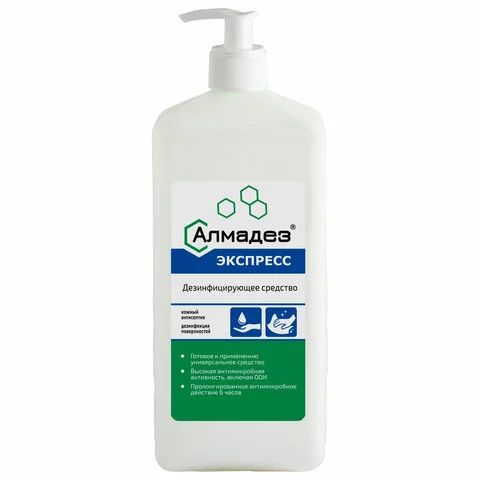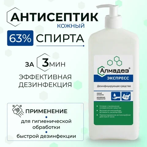 Антисептик для рук и поверхностей спиртовой (63%) с дозатором, 1 л, АЛМАДЕЗ-ЭКСПРЕСС, дезинфицирующи