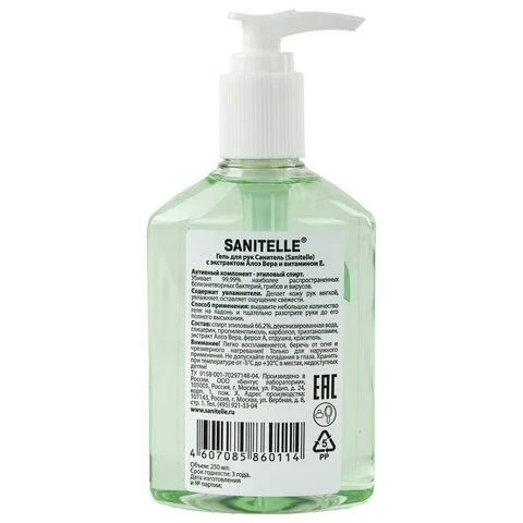 Дезинфицирующее средство (антисептик) Sanitelle Алоэ 0.25 лАнтисептический гель для рук на ...