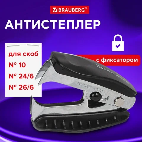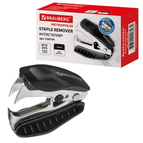 Антистеплер для скоб №10 и №24/6, BRAUBERG 'METROPOLIS', с фиксатором, черный, 228744