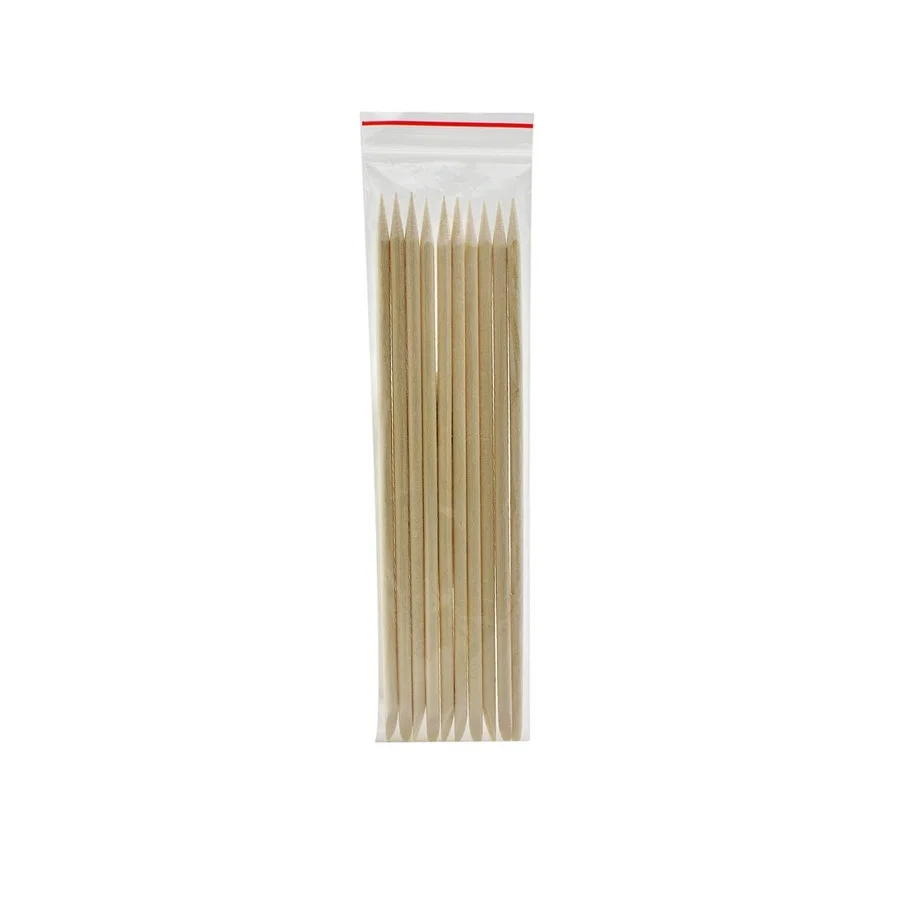 Палочки для кутикулы поддаются заточке на грубоабразивной пилке, что придает палочке более мягкие и заточенные края. Апельсиновая палочка мягко и бережно отодвигает кутикулу, не повреждая и не царапая ее и поверхность ногтя.