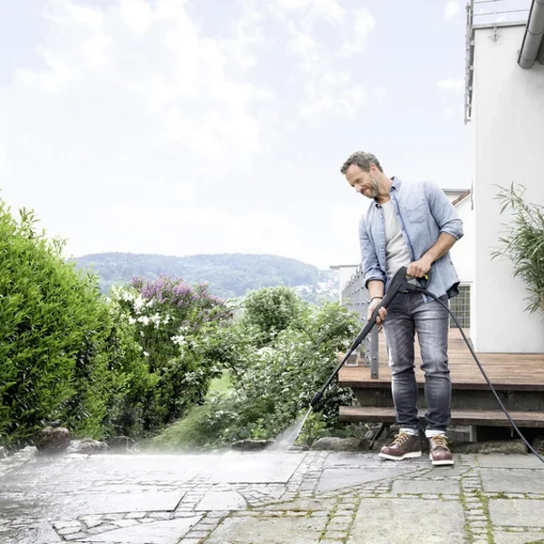 Минимойка Керхер K 2 Compact – аппарат высокого давления начального уровня. Она создана для непродолжительного очищения несильных загрязнений с садовых инструментов, мебели, велосипедов, колясок. Рассчитана на применение время от времени, для очистки слегка загрязненной садовой мебели, велосипедов. Производительность по площади около 20 кв. м.