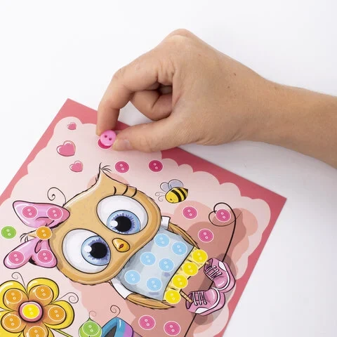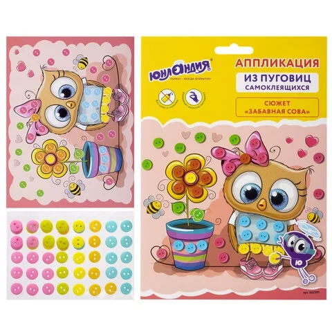 Набор для творчества 'Аппликация из пуговиц', 'Забавная сова', основа 20х15 см, ЮНЛАНДИЯ, 662391