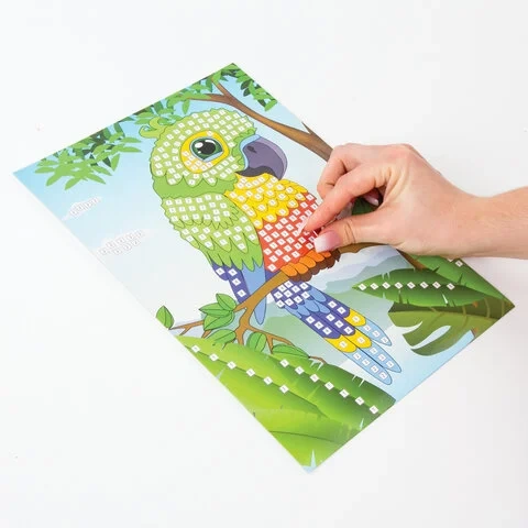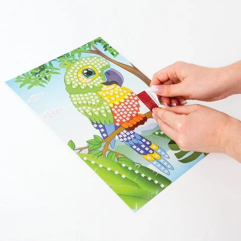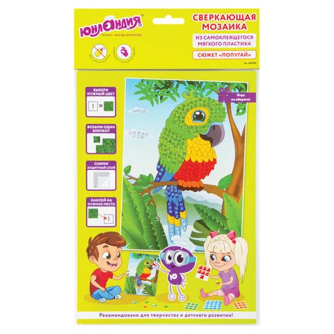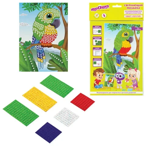 Набор для творчества 'Сверкающая мозаика из мягкого пластика', 'Попугай', 21х29 см, ЮНЛАНДИЯ, 662362