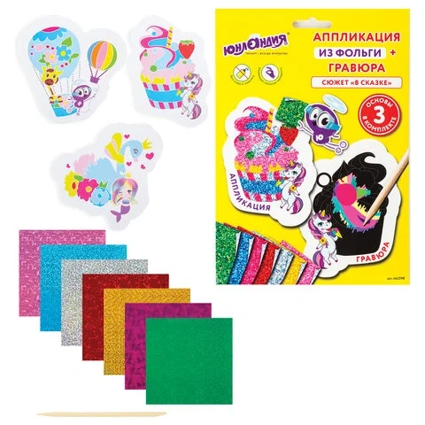 Набор для творчества 2 в 1 'Гравюра-аппликация', 'В сказке', 3 основы, ЮНЛАНДИЯ, 662398