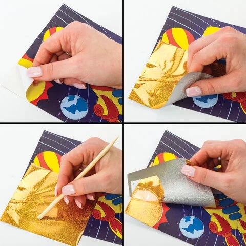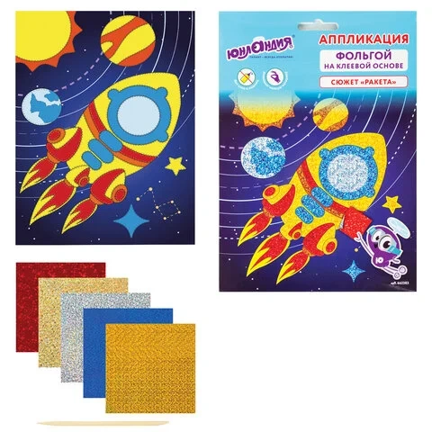 Набор для творчества 'Аппликация из фольги', 'Ракета', самоклеящаяся основа 20х15 см, ЮНЛАНДИЯ, 6623