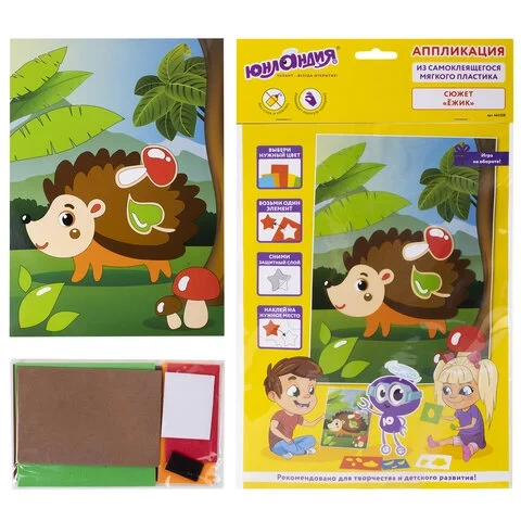 Набор для творчества 'Аппликация из мягкого пластика EVA', 'Ёжик', 21х29 см, ЮНЛАНДИЯ, 662358