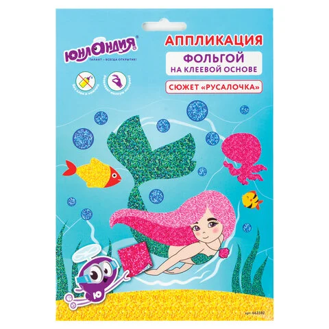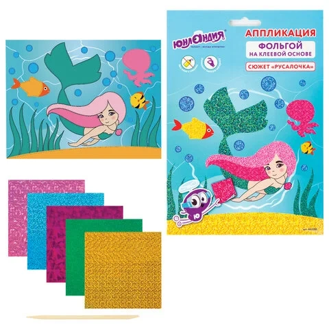 Набор для творчества 'Аппликация из фольги', 'Русалочка', самоклеящаяся основа 20х15 см, ЮНЛАНДИЯ, 6