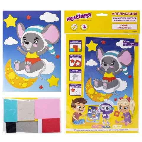Набор для творчества 'Аппликация из мягкого пластика EVA', 'Мышонок', 21х29 см, ЮНЛАНДИЯ, 662357