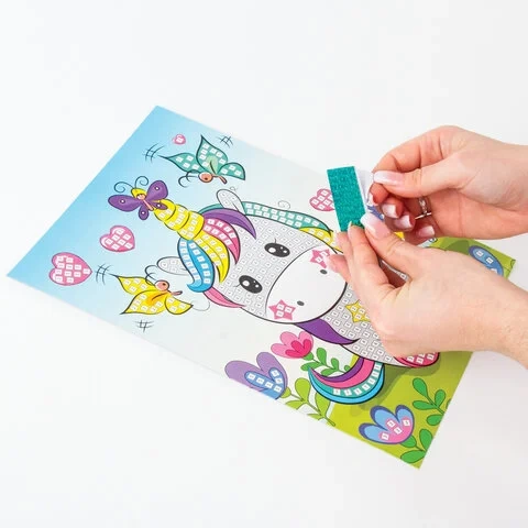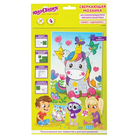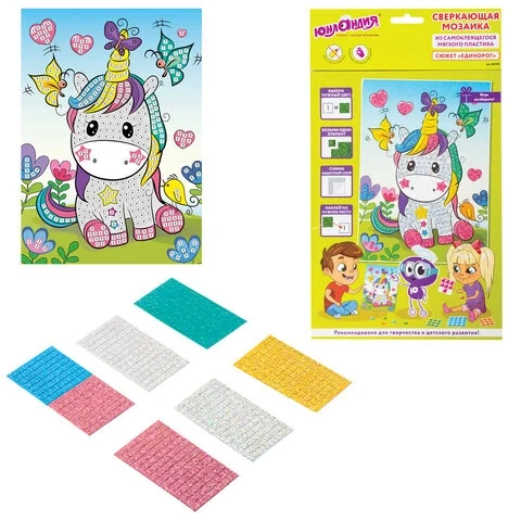 Набор для творчества 'Сверкающая мозаика из мягкого пластика', 'Единорог', 21х29 см, ЮНЛАНДИЯ, 66236