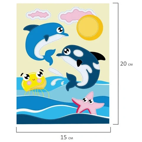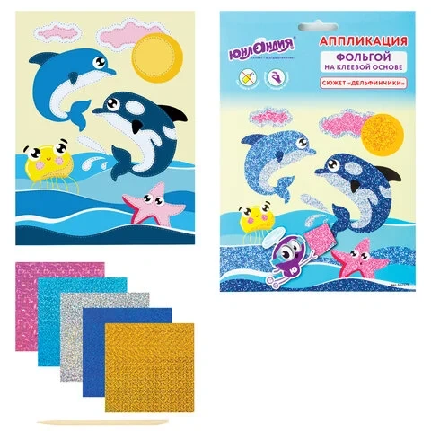 Набор для творчества 'Аппликация из фольги', 'Дельфинчики', самоклеящаяся основа 20х15 см, ЮНЛАНДИЯ,