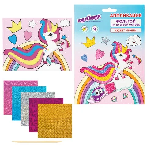 Набор для творчества 'Аппликация из фольги', 'Пони', самоклеящаяся основа 20х15 см, ЮНЛАНДИЯ, 662384