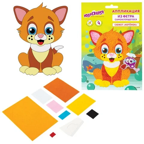 Набор для творчества 'Аппликация из фетра', 'Котёнок', основа 20х15 см, ЮНЛАНДИЯ, 662390
