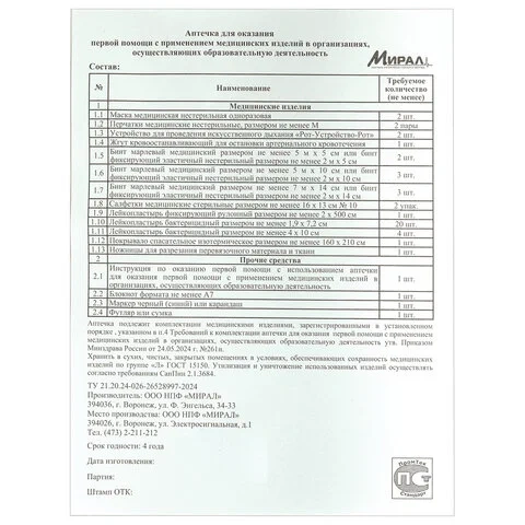 Внешний вид вложений и надписи на аптечке могут отличаться от фото на сайте.