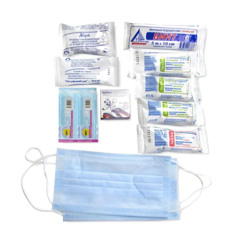 5. Бинт марлевый медицинский стерильный 5 м х 10 см: 1 шт.