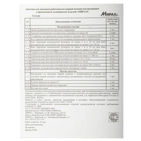 Внешний вид вложений и надписи на аптечке могут отличаться от фото на сайте.