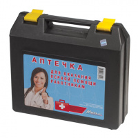 5 марта 2011 года приказом Минздравсоцразвития России № 169н были утверждены требования к комплектации изделиями медицинского назначения аптечек для оказания первой помощи работникам. Данное изделие произведено в соответствии с приказом Минздравсоцразвития РФ №169н от 05.03.2011 «Об утверждении требований к комплектации изделиями медицинского назначения аптечек для оказания первой помощи работникам». Состав аптечки: 1. Изделия медицинского назначения для временной остановки наружного кровотечения и перевязки ран Жгут кровоостанавливающий - 1 шт. Бинт марлевый медицинский нестерильный (5 м х 5 см) - 1 шт. Бинт марлевый медицинский нестерильный (5 м х 10 см) - 1 шт. Бинт марлевый медицинский нестерильный (7 м х 14 см) - 1 шт. Бинт марлевый медицинский стерильный (5 м х 7 см) - 1 шт. Бинт марлевый медицинский стерильный (5 м х 10 см) - 2 шт. Бинт марлевый медицинский стерильный (7 м х 14 см ) - 2 шт. Пакет перевязочный медицинский индивидуальный стерильный с герметичной оболочкой - 1 шт. Салфетки марлевые медицинские стерильные (не менее 16 x 14 см № 10) - 1 уп. Лейкопластырь бактерицидный (не менее 4 см х 10 см) - 2 шт. Лейкопластырь бактерицидный (не менее 1,9 см х 7,2 см) - 10 шт. Лейкопластырь рулонный (не менее 1 см х 250 см) - 1 шт. 2. Изделия медицинского назначения для проведения сердечно-легочной реанимации Устройство для проведения искусственного дыхания «Рот-Устройство-Рот» или карманная маска для искусственной вентиляции лёгких «Рот-маска» - 1 шт. 3. Прочие изделия медицинского назначения Ножницы для разрезания повязок по Листеру - 1 шт. Салфетки антисептические из бумажного текстилеподобного материала стерильные спиртовые (не менее 12,5 см x 11,0 см) - 5 шт. Перчатки медицинские нестерильные, смотровые (размер не менее М) - 2 пары. Маска медицинская нестерильная 3-слойная из нетканого материала с резинками или с завязками - 2 шт. Покрывало спасательное изотермическое (не менее 160 см x 210 см) - 1 шт. 4. Прочие средства Английские булавки стальные со спиралью (не менее 38 мм) - 3 шт. Рекомендации с пиктограммами по использованию изделий медицинского назначения аптечки для оказания первой помощи работникам - 1 шт. Футляр или сумка санитарная - 1 шт. Блокнот отрывной для записей формат не менее А7 - 1 шт. Авторучка - 1 шт. Оснащение персонала организаций и предприятий качественными аптечками для оказания первой помощи работникам позволит снизить тяжесть последствий травматизма: в виде спасения жизни, сохранения трудоспособности и т.д. При этом экономические затраты на приобретение необходимого количества аптечек могут быть несопоставимы как с ценой человеческой жизни, так и с размерами социальных выплат.