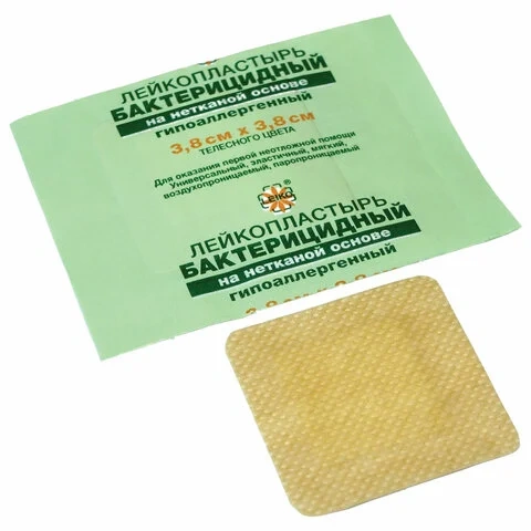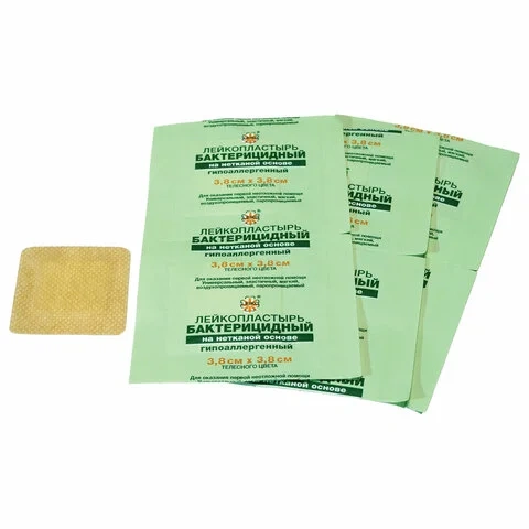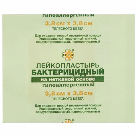 Лейкопластырь бактерицидный LEIKO комплект 100 шт., 3,8х3,8 см, на нетканой основе, телесного цвета,