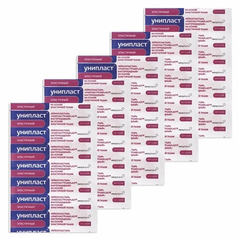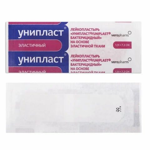 Лейкопластырь бактерицидный УНИПЛАСТ, полоска 1,9х7,2 см, нетканая основа, эластичный, 20024387
