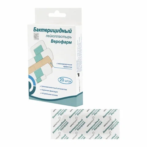 Набор лейкопластырей бактерицидных 20 шт. ВЕРОФАРМ, 4 размера, телесные, 20035854