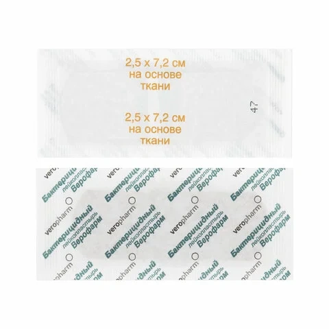 Лейкопластырь бактерицидный ВЕРОФАРМ, полоска 2,5х7,2 см. тканевая основа, 20024104