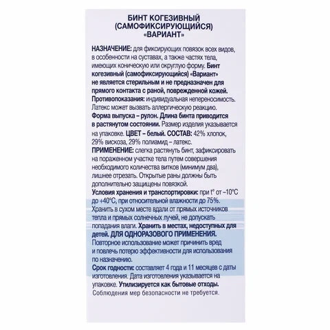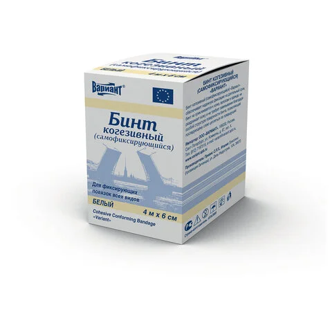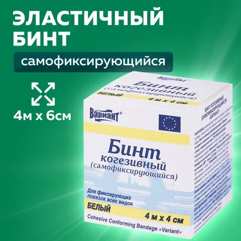 Бинт эластичный самофиксирующийся 4 м х 6 см, белый, 'ВАРИАНТ'