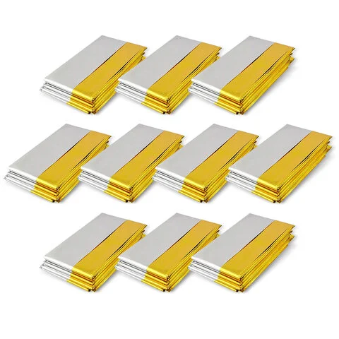 Термоодеяло покрывало изотермическое КОМПЛЕКТ 10 шт., серебро/золото, 160х210 см, DASWERK, 631159