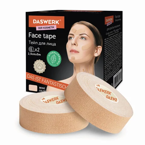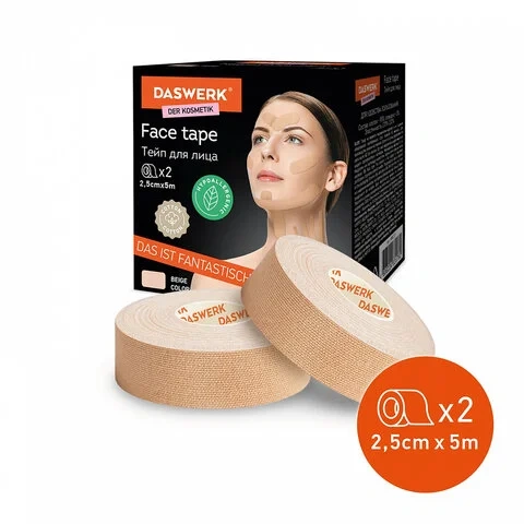 Кинезио тейп/лента для лица, лифтинг эффект, 2,5 см х 5 м, КОМПЛЕКТ, 2 рулона, бежевый, DASWERK, 680