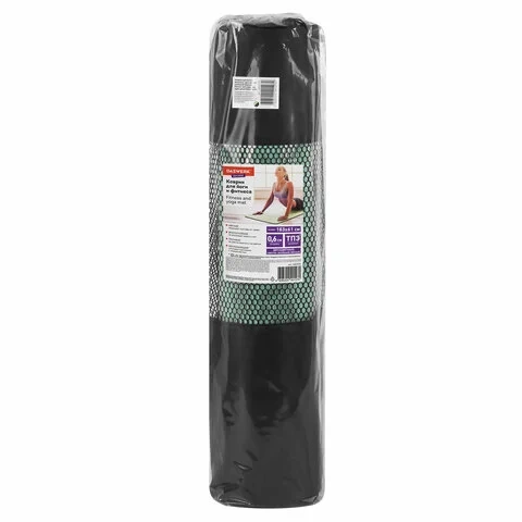 Коврик для йоги и фитнеса спортивный двухцветный, ТПЭ, 183x61x0,6 см, бежевый/чёрный, DASWERK, 68003