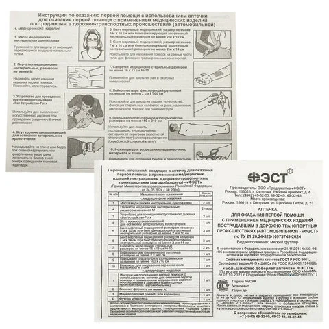Аптечка первой помощи автомобильная, по приказу № 260н, ФЭСТ, тканевая сумка, 3737