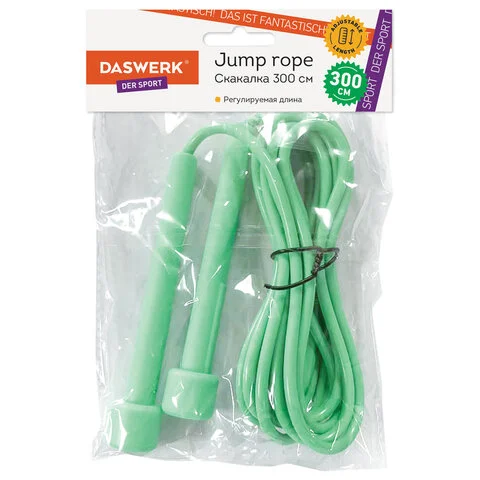 Скакалка спортивная Daswerk 300см, бирюзовая, регулируемая, ПВХ