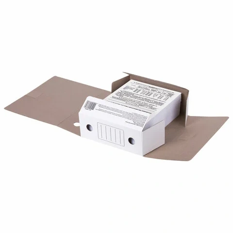 Предназначена для документов формата А4 и вмещает до 900 листов. Высота папки составляет 325 мм, ширина - 250 мм, а ширина корешка - 100 мм. Имеет повышенную прочность за счет использования качественного микрогофрокартона. Спокойный белый цвет архивной папки не будет отвлекать от рабочего процесса.