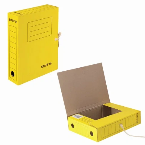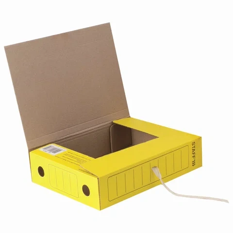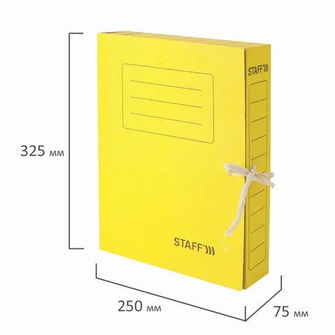 Предназначена для документов формата А4 и вмещает до 700 листов. Высота папки составляет 325 мм, ширина - 250 мм, а ширина корешка - 75 мм. Изготовлена из качественного микрогофрокартона. Яркий желтый цвет архивной папки выделит ее в ряду других.