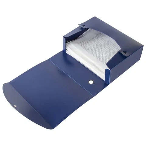 Изготовлен из пластика синего цвета толщиной 0,9 мм. Ширина корешка - 100 мм. Вмещает до 900 листов формата А4. Закрывается на кнопку. Сохраняет отличный внешний вид в течение всего срока службы. Поставляется в разобранном виде.