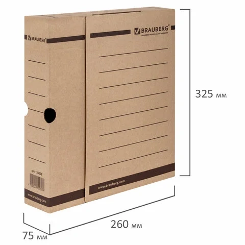 Архивный короб Brauberg коричневый, А4, 75мм, 126509