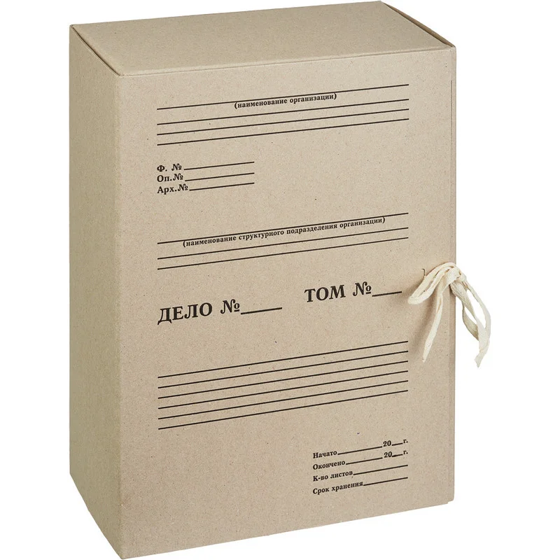 Складной архивный короб Отчет Архив изготовлен из переплетного картона 1,25 мм плотностью 700 г/кв.м. В закрытом виде фиксируется с помощью двух хлопчатобумажных завязок. Ширина корешка - 120 мм. Позволяет надежно хранить документы как в вертикальном, так и в горизонтальном положении. Внешний размер - 240x120x330 мм, внутренний размер - 237х116х330 мм. Картон - экологически чистый и пригодный для переработки материал.