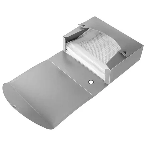 Изготовлен из пластика серого цвета толщиной 0,9 мм. Ширина корешка - 100 мм. Вмещает до 900 листов формата А4. Закрывается на кнопку. Сохраняет отличный внешний вид в течение всего срока службы. Поставляется в разобранном виде.