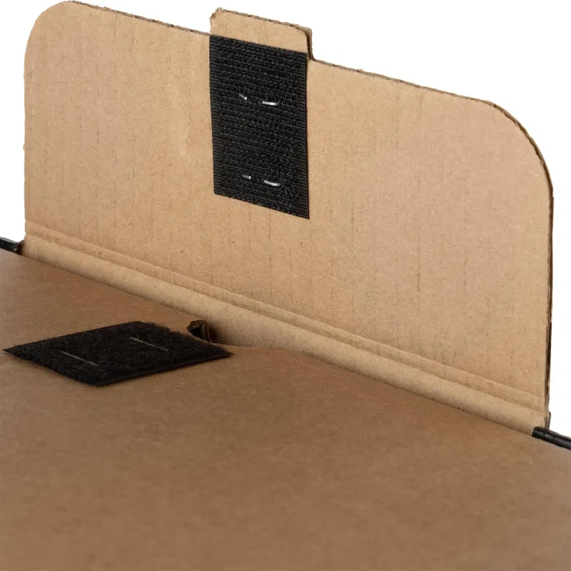 Возможно вертикальное на стеллажах или в архивных коробах. Для увеличения срока службы места сгиба крышки проклеены с двух сторон клейкой лентой на тканевой основе. Крышка открывается вниз, фиксируется на липучке. Лёгкая сборка.