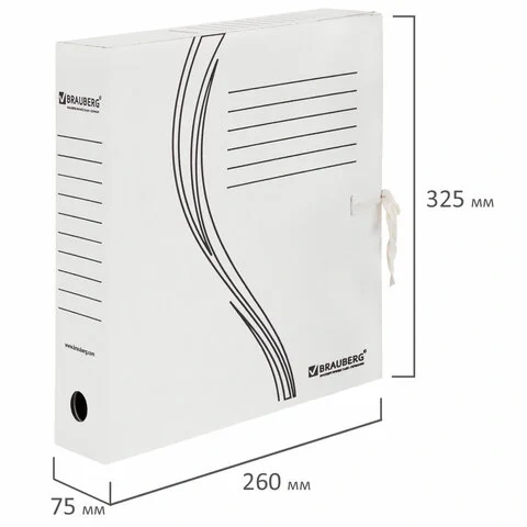 Архивная папка на завязках Brauberg белая, А4, 75 мм, 124850