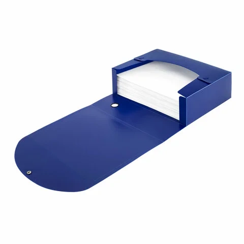 Изготовлен из пластика синего цвета толщиной 0,9 мм. Ширина корешка – 100 мм. Вмещает до 900 листов формата А4. Закрывается на кнопку. Сохраняет отличный внешний вид в течение всего срока службы. Поставляется в разобранном виде.