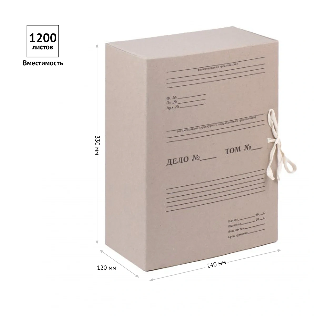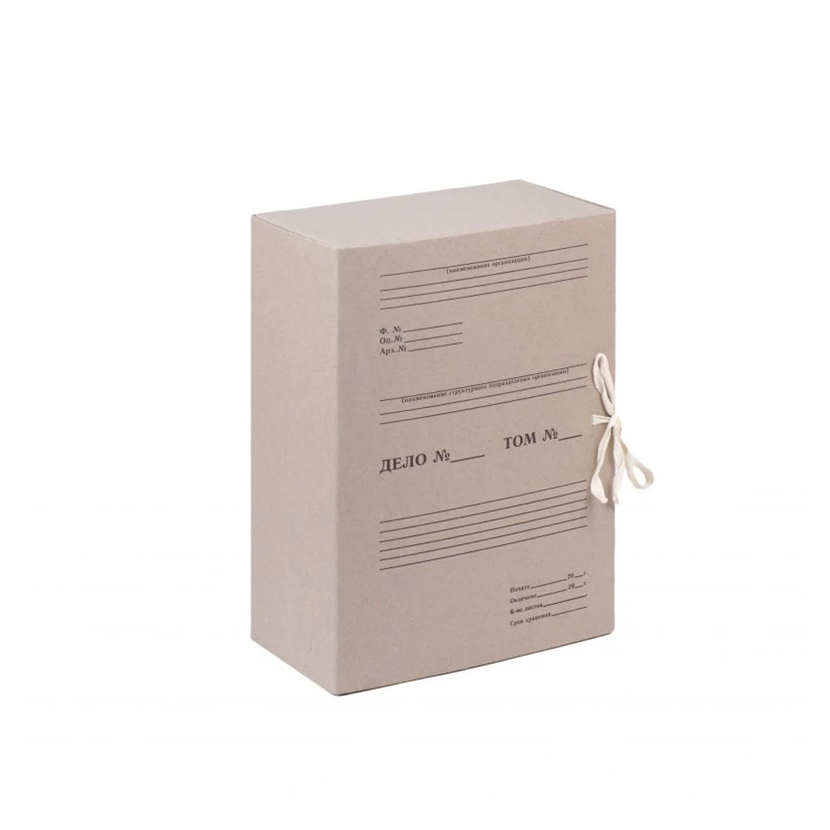 Короб архивный с завязками OfficeSpace предназначен для хранения большого объема документации. Изготовлен из прочного переплетного картона с печатью на обложке 'ДЕЛО'. В закрытом виде короб фиксируется на 2-е хлопчатобумажные завязки. Внутренние клапаны выполнены из переплетного картона. Поставляется в разобранном виде. Ширина корешка 120 мм.