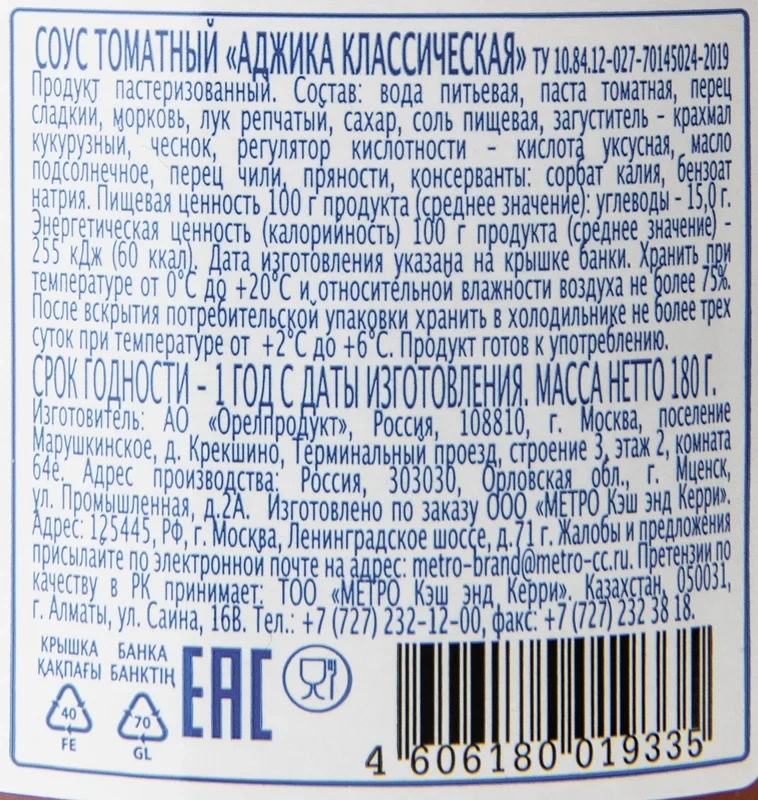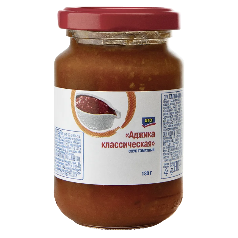 Аджика aro Классическая 180 г изготовлена из качественных ингредиентов и обладает ярким остро-пряным вкусом. Соус по традиционному кавказскому рецепту не содержит глутамат натрия, красители ароматизаторы. Он гармонично дополнит вкус мяса, овощей, грибов и других продуктов. Стеклянная банка надежно защищает продукт на протяжении всего срока хранения. Крышка плотно закрывается и не даст соусу испортиться раньше времени. Благодаря широкому горлышку, соус легко дозировать при помощи чайной ложки.